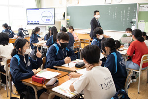 3年の国語科の授業では書写を行っていました。また、2年の音楽科の授業では、曲の創作が大詰めを迎えていました。どちらの授業でも、仕上げた作品を自身で振り返るとともに、教員からの助言を受けてよりよいものへしていく場面がみられました。