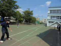 8月22日(金)の部活動では、午前中校庭でソフトテニス部が週末の大会に向けて頑張っていました。体育館では卓球部が1人1人順番に先生からレッスンを受けていました。また女子バレーボール部が立川九中と合同練習をやっていました。校舎内では吹奏楽部が羽衣まつりでの発表に向けて、音を合わせていました。教室の環境を整えていた担任の先生もいました。2学期始業式が近づいているなと感じます。