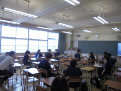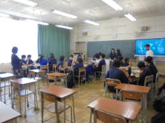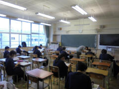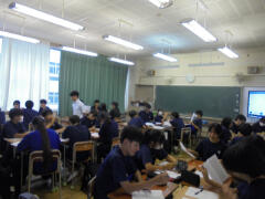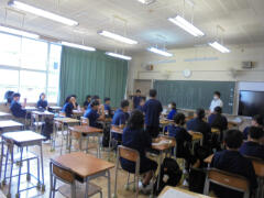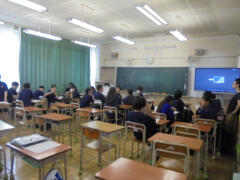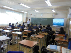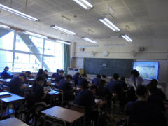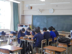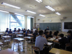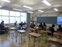 11月25日(火)の授業のようすです。1年生の美術では、レタリングを勉強していました。先生が電子黒板に書き方を実際に撮してくれるので、わかりやすかったです。2年生では英語の授業でALTの先生が授業を行っていました。3年生の国語では、「合意形成に向けて話し合おう」という授業で、班でテーマをもとに話し合う中で、複数の意見の共通点を見出して、多様な考え方を認め合いながら、合意形成に向かって話し合っていました。かなり難しい話し合いです。でもさすが3年生。司会者を中心によく頑張っていました。入試の面接や就職の集団面接でも活かされそうです。民主主義のキホンですね!