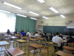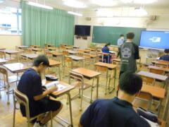 夏休みに入り三者面談が始まっていますが、同時に7月22日(火)から28日(月)までの間、学習補充教室が行われています。これは落ち着いた環境の中で自学自習を行えるようになることを目指して行っています。初日はまだ少なめの参加ですが、三者面談や部活動の合間をうまく活用してほしいと思います。
