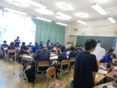 10月3日(金)の放課後に、専門委員会が行われていました。来週に生徒総会が行われるため、各クラスで各委員会の活動方針等がもまれ、そこから出てきた質問や意見等に対して、回答を考えます。各委員会とも、一生懸命に検討していました。また、その後には、希望者による英語検定が行われていました。健闘を祈ります!