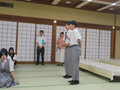 7月15日(火)6校時終了直後に、避難訓練を行いました。調理室からの火災の想定です。生徒は真剣に訓練に臨んでいましたが、ハンカチを持っておらず口を覆えない人が目立ちました。次回は気をつけたいですね。今日は朝からの雨のため校庭のコンディションが悪いため、校舎内の避難経路を確認して校庭への避難は無しでした。