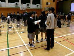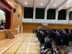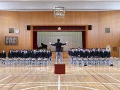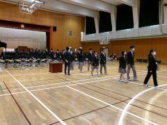 3月17日(火)の午後、1,2年生は下校して、3年生の卒業式予行を行いました。予行とは本番通りに動いてみて、課題があれば改善する場です。一部省略もありましたが、3年生は本番に向けてしっかりと行動することができました。