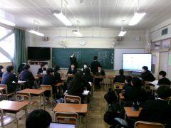 3月6日(金)6校時に、1年生が立川市民科の取組として、職業講話を聴きました。今年度は1年生の保護者のご協力をいただき、病院勤務の医師である消化器外科医さんをお招きして、働くことの意義や楽しさ、大変さなどを話していただきました。また、最後まであきらめずに挑戦することの大切さを教えていただきました。来年度は実際に学校の外に出て職場を体験しますが、仕事とはどういうものなのか、なぜ働くのか等を今から少しずつ考えてもらえたらと思います。