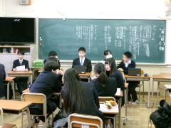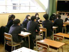 3月6日(金)の放課後、生徒会主催による意見交換会が行われました。これは、生徒一人ひとりが学校生活について考えを深め、生徒の自治活動をより活発にし、教員も生徒とともにルールを考え、より過ごしやすい学校生活を送れるようにするために実施しています。これまで、学級委員が今後の学校生活の改善点(投書された内容)について学級討議を行い、その結果を受けて、生徒会本部で集約し、今日に至っています。ここで議論された内容は、生徒会だより等で報告します。先生に与えられるのではなく、自分たちでルールを改めて考え、必要があれば見直すことは、大切なことだと思います。これからもより過ごしやすい学校生活を目指して、頑張りましょう。