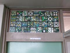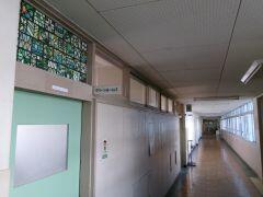 グリーンルーム入口上の窓に、生徒が作成した「両面切り絵」が飾られています。とてもきれいです!「立川三」のデザインが隠れているそうなんだけど、どこだろう?