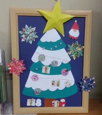 受付(事務室)前の掲示物は、毎回、四中生が作ってくれています。12月に入り、冬らしいデザインに変わりました。季節感があって素敵です。来週の木曜日(25日)は終業式、今学期も残りわずかです。
