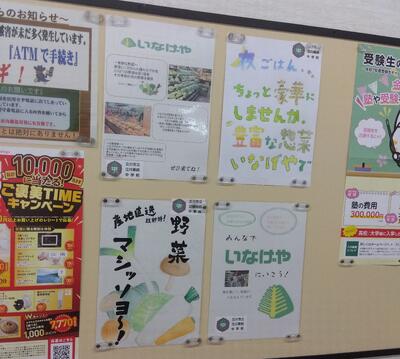 そして、今日から、いなげやについて調べてまとめたポスターを「いなげや立川幸店」に掲示中です。