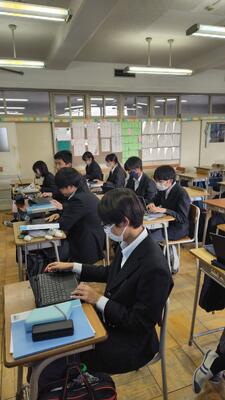今年度の3年生の取組は、クラスの枠を超えて学習を進めています。クラスは違えど1つの学年団という良い雰囲気が授業でみられます。このように積み重ねた3年生の団結力で受験を乗り切り、最高の卒業式を迎えてほしいなぁと思いながら授業を見させてもらいました。がんばれ3年生!