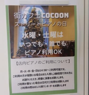 また、「街カフェCOCOON(コクーン)」という西立川駅近くにあるカフェも紹介されています。四中からは、それなりに離れていますが、このカフェ、以前から気になっていました。「おしゃれな外観」&「ストリートピアノ常設店」というユニークなお店です。