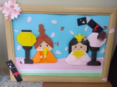 事務室前の生徒作品は、「桜」&「おひな様」&「卒業証書」がデザインされています。今月もセンスが良い作品に仕上がっています。