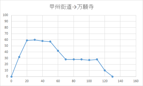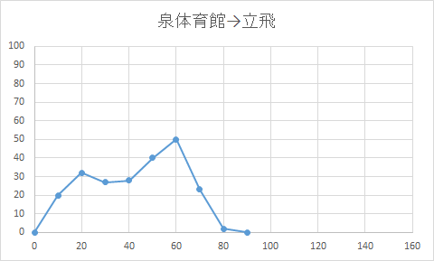 なお、泉体育館から立飛と甲州街道から万願寺の間は、それぞれ以下のようになります。なぜそのようなグラフになるのかは、ぜひ自分で考えてみましょう。