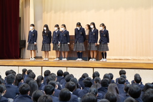 全校朝礼を行いました。また、朝礼に引き続き、表彰と生活についての話がありました。