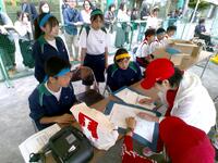 混乱がないように複数の先生で役割分担をして、1人ずつ回収と配布を行いました。