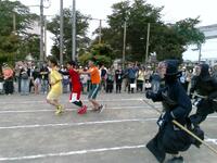 多くの保護者に囲まれる中、生徒たちは練習通りの大きな声で技を披露していました。