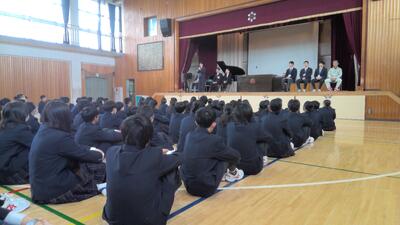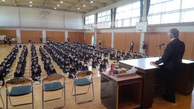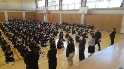始業式では、新しく着任した校長先生からのお話を、しっかり顔を上げて聞いている生徒の姿が印象的でした。
