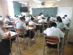 始業式が終わり、国語、数学、英語の休み明けテストに取り組みました。