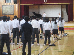 当日の進行や学年合唱、クラス発表の入退場を体育館で確認しました。