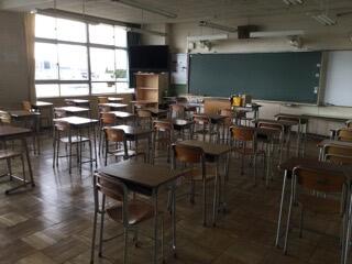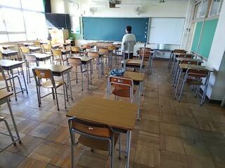 見回りで、教室を覗くと机がきれいに並んでいました。