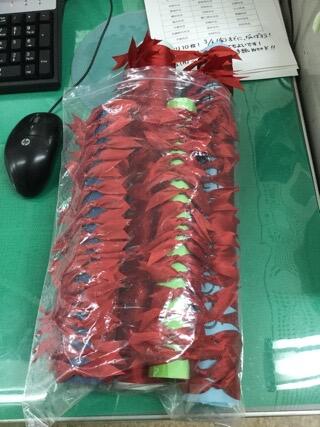 職員室には卒業証書を纏めるリボンが準備されていました。