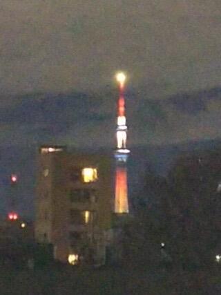 スカイツリーは、追悼の色なのかいつもと違う照明でした。