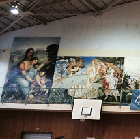 続けて取り組まれ、数種類の作品が、体育館の壁面