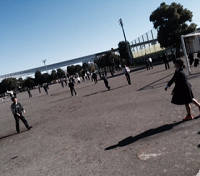 さて、落ち葉が舞い散る校庭で、六中生は思い思い