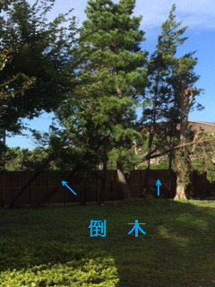 その体育館に行く右手の杉は、倒れかけは4本、完全に倒れてし