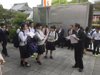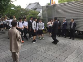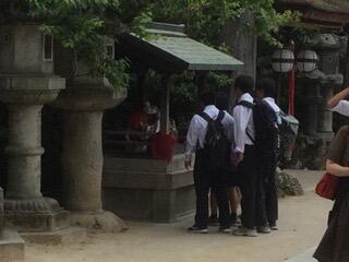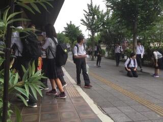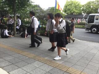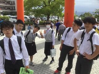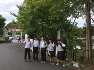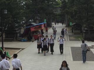 市バス101急行に乗って天満宮へ、やや遅れているようで、しばらく待つとやってきました。六中生。