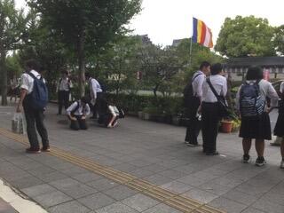 昨日の朝でしたが、体育大会の練習期間で疲れているでしょうに、挨拶運動をする生徒たちがいました。ありがとう。
