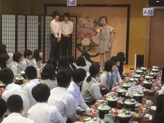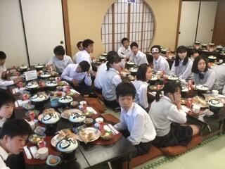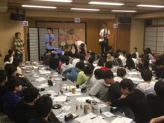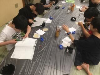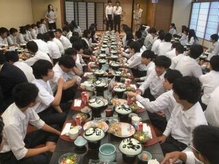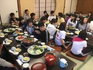 昨日夕方の5時には夙夜に戻り、入浴を済ませ、夕食と加飾体験を大広間で行いました。