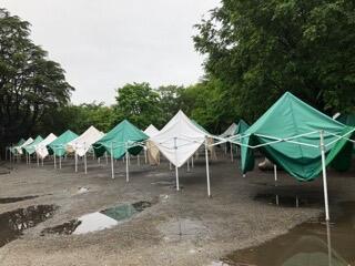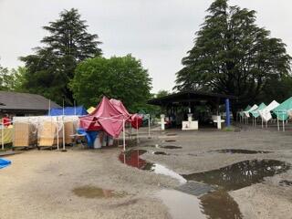 会場に確認と挨拶に行ってくれた副校長から、土砂降りの後のバーベキュー広場の様子が送られてきました。