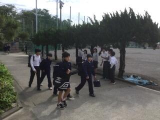 会議の終わるのを待って再登校の生徒が楽しそうに部活号を開始していました。