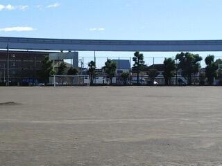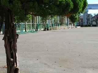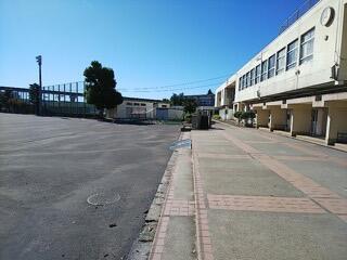 校庭は水たまりもなく、青空と富士山が綺麗に見えていました。