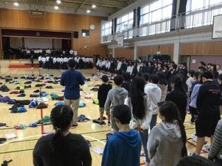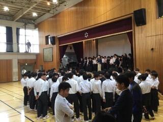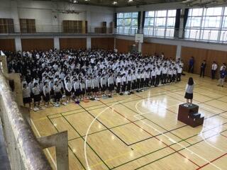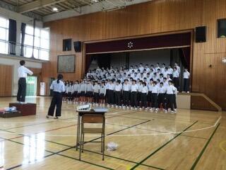開会の挨拶の後、まず校歌を全校で歌いました。