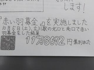 先日、立川駅にて生徒会役員が行なった赤い羽根募金は多くの方々にご協力いただき