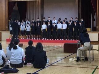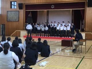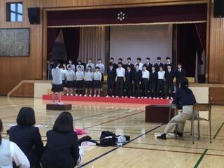 学年合唱ののち発表順にクラス合唱を行いお互いの出来を確認し合いました。