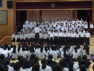 その後は、小学生も一緒に全校合唱でコスモスを歌いました。
