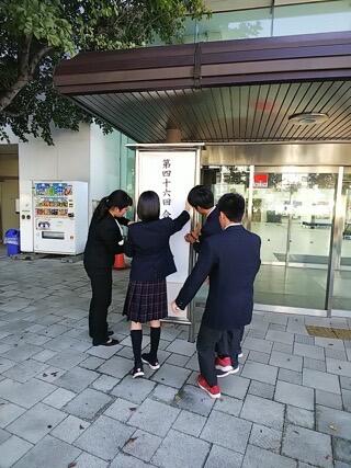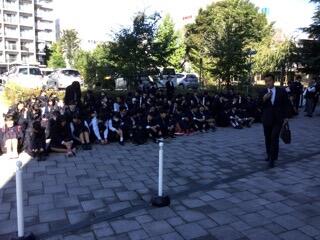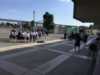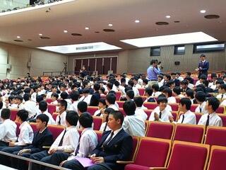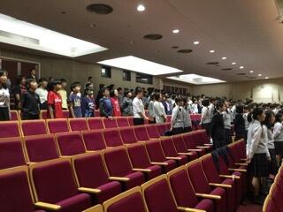昨日の合唱コンクールでは、RISURUホールに集まり、ましたが、吹奏楽や太鼓部の生徒は楽器の積み込みのために7時過ぎには学校に集まって機材の積み込みをしていました。8時半をすぎるとポツポツとホールの前に生徒が集まり始め、8時15分にはほぼ全員が遅刻もほとんどなく集合できました。