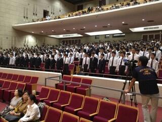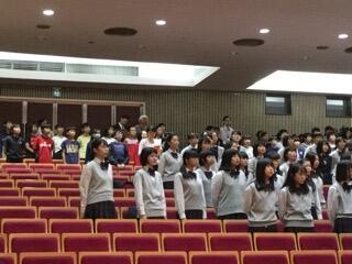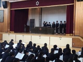 開会の挨拶の後、まず校歌を全校で歌いました。