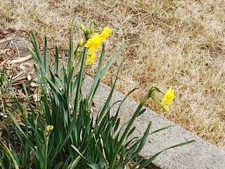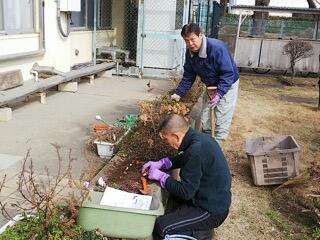 用務主事さんが玄関横のプランターに新しい球根を植えていました。