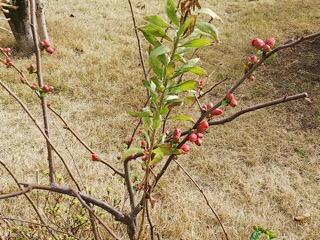 昨日何の蕾だろうと思った花はどうやら木瓜(ボケ)のようです。