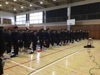 出されている対応方針によれば、罹患者が出た学校はさらに厳格な管理下におかれるからです。無事に卒業式、修了式を迎えられるよう休校中も気を引き締めて生活をしてもらうことをお願いします。うがい、手洗い、マスク、殺菌、を行い、不要不急の外出は控えましょう。卒業式の実施に向けて、教職員、生徒、保護者が一体になって乗り切りたいと思っています。