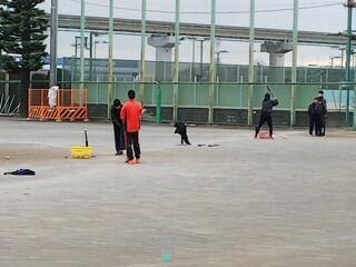 反対側の校庭ではいつもの野球部の朝練習が行なわれています。