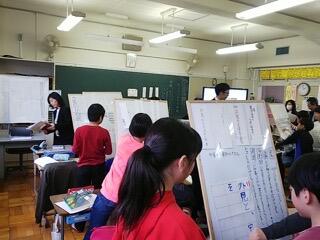ホワイトボードを活用した話し合い深め合いの活動を実践していました。