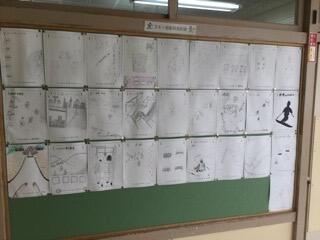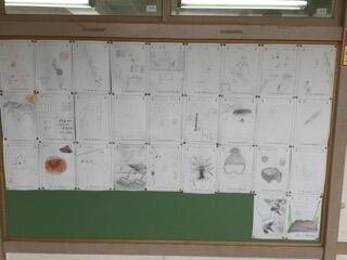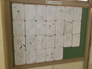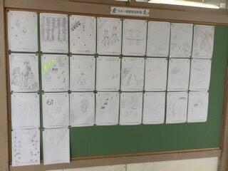 1年生の教室を回っていると廊下に作品が新たに掲示されていました。