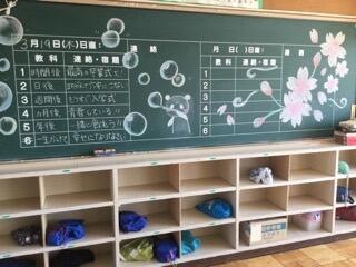 3年生各クラスの評議委員が黒板に装飾をしてくれました。