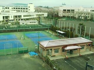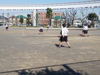 校庭では、テニスやサッカー、キャッチボールに興じる生徒の姿がありました。