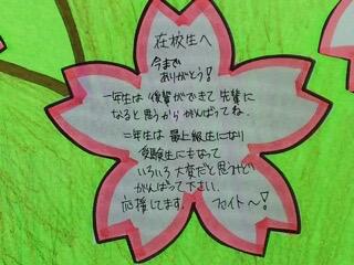 在校生に、これからの一年頑張ってくださいとメッセージが書かれています。