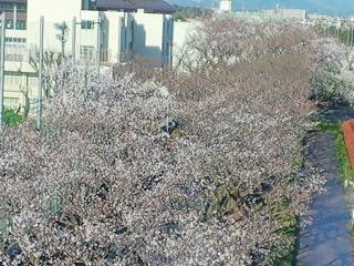 花が高い枝にしか咲いていないので、満開の感じが下から見ても伝わりません。